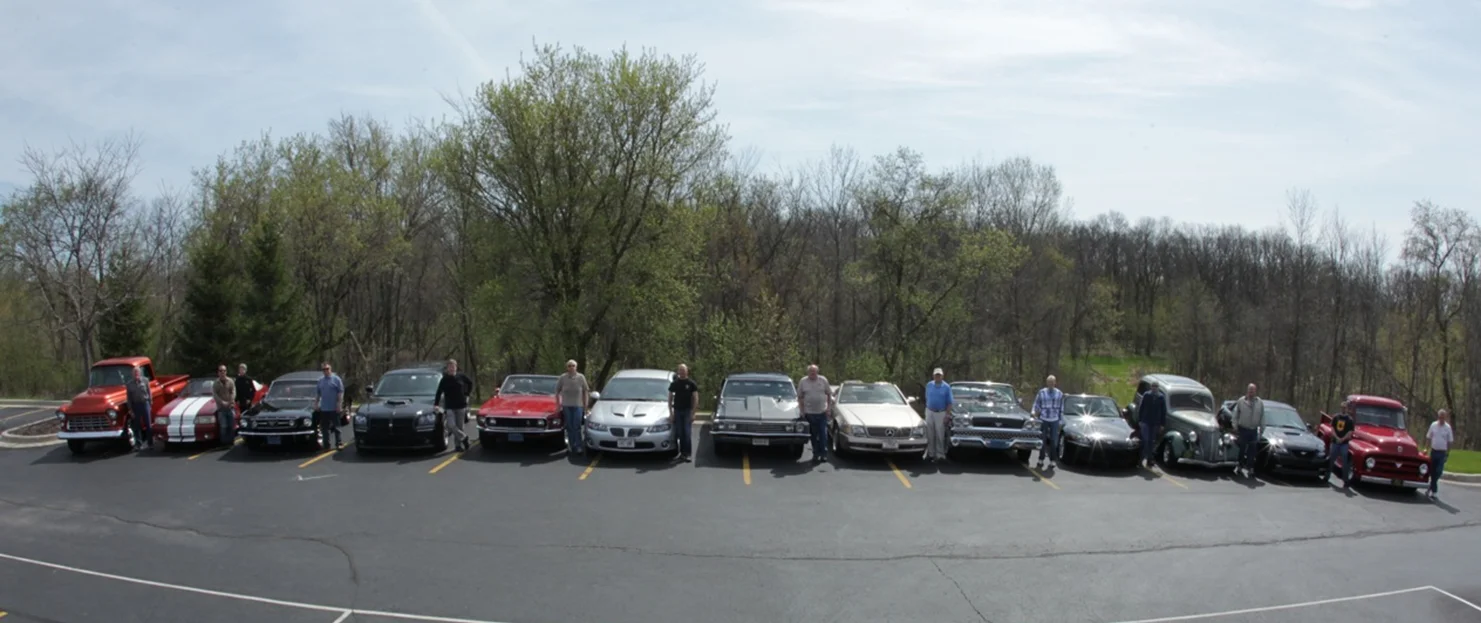 Christ's Classic Cruisers members held their annual car display and photo day after the final men's breakfast at Brookside Baptist Church in Brookfield, WI on May 10th. After a delicious steak and eggs breakfast and an inspiring message from the Brookside featured speaker the club members gathered outside to share with others interested in their cars and their organization. A photo event followed where members and friends could get their picture taken with their car by a professional photographer. We also took a couple group pictures with all attending included.